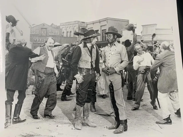 А это Мэл Брукс на площадке Blazing Saddles (1974). Глядя на это фото, понимаешь: они прекрасно знали, что снимают самую неполиткорректную комедию в истории, которую сегодня «культура отмены» сожрала бы еще на этапе читки сценария. Но Бруксу было плевать, и слава богу. Смех на площадке стоял такой, что, говорят, лошади пугались.